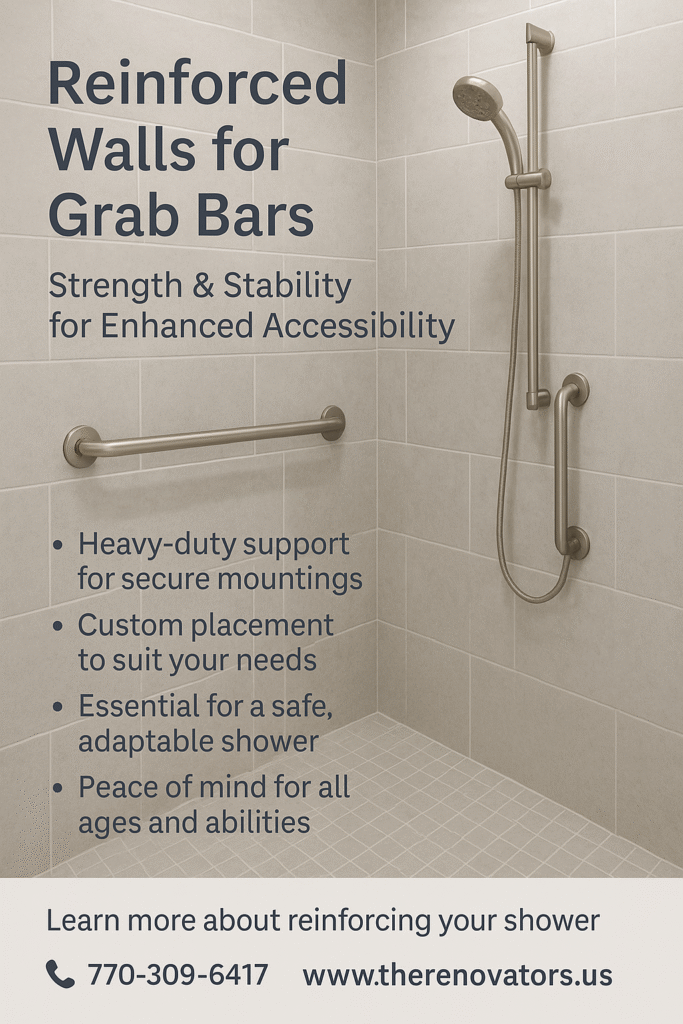 Invest in peace of mind with reinforced walls for grab bars — the invisible upgrade that makes all the difference.